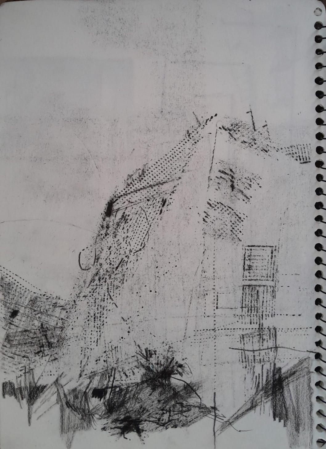 Karachi has become illusionary, like a Saraab - existing yet not; a mirage in the desert. Still, I peek through different holes to map it out. The drawings beneath, made through constant interference of graphite pencil with mesh, are explorations which speak out to the invisible, militarised dis-functionality + an invisible memory of the city I had. Somehow being erased. Always being renovated. Now being encroached. Now entirely absent.