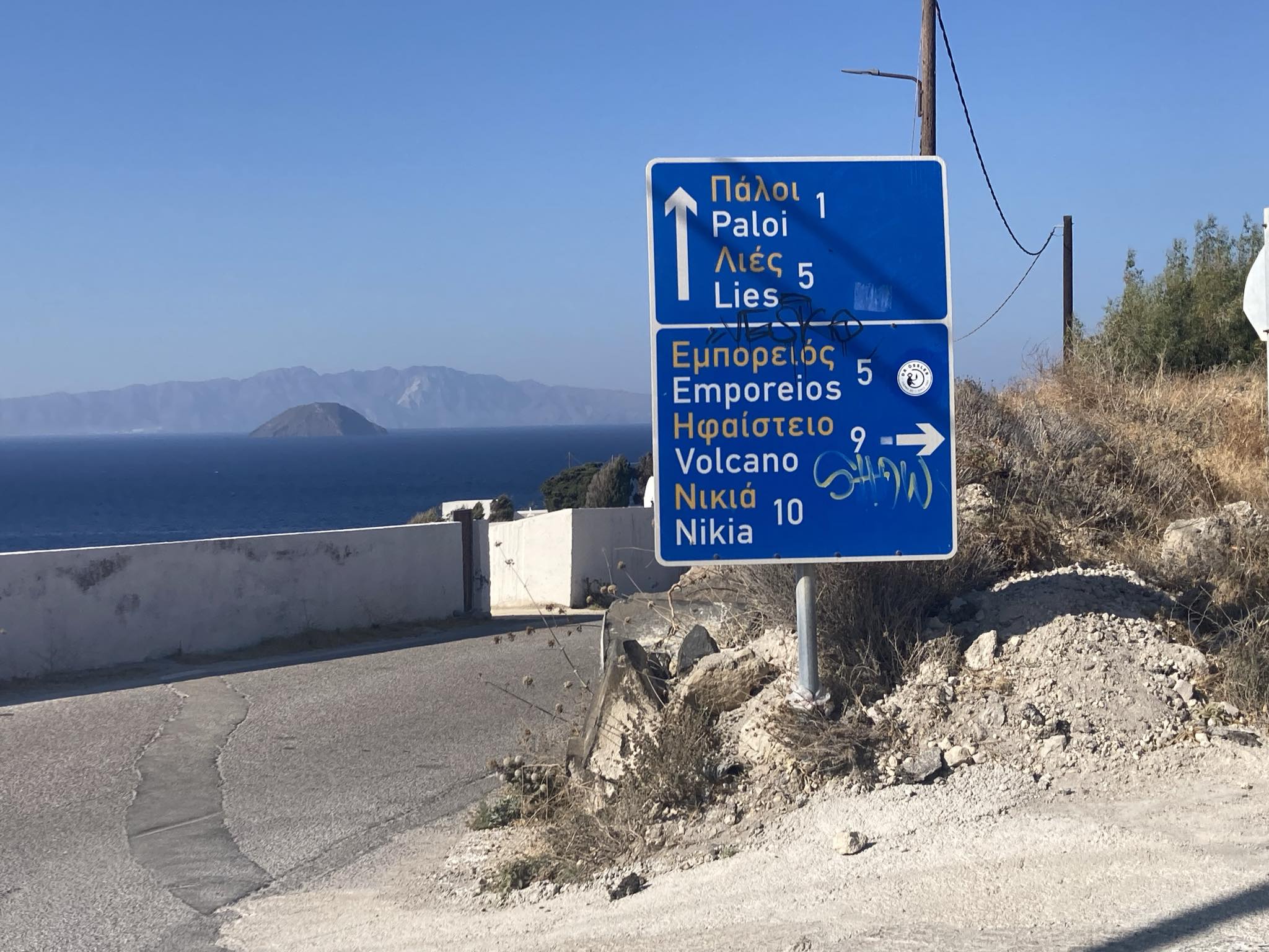 Nisyros is a prison. According to Greek mythology, the land mass was formed during the Gigantomachy War, when Poseidon ripped a chunk off of the neighbouring island of Kos and threw it at the Giant Polyvotis, trapping him underneath the sea. This chunk became Nisyros. The volcanic activity, rumblings and eruptions of Nisyros are the giant’s centuries-long efforts to free himself from his tectonic jail.