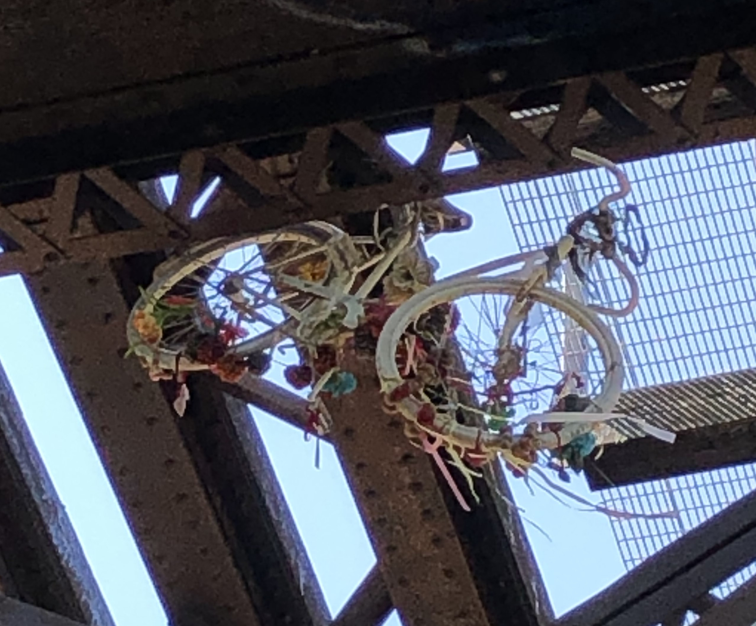 I claim no authority on graffiti in Minneapolis, and can only report my experience and ask questions. My family and I encountered these graffiti underneath the Short Line Bridge in the Summer of 2022. What came before, whether these current graffiti are palimpsests or not, I cannot say. Certainly something will come after. Given the often ephemeral and changing existence of graffiti these may or may not still be present. To even begin an understanding of these graffiti, it is important to provide the context in which they are situated. At the time of our encounter there was also a swing, an old dilapidated couch, an elevated “ghost” bicycle, and a variety of ground detritus. To what uses others may put this location under an urban bridge I can only speculate, but it is clearly an area that has been utilized in a range of meaningful ways. For me the graffiti helped to create a sort of refuge, an artistic oasis literally underneath a busy road, evoking a sense of place under the Short Line Bridge.